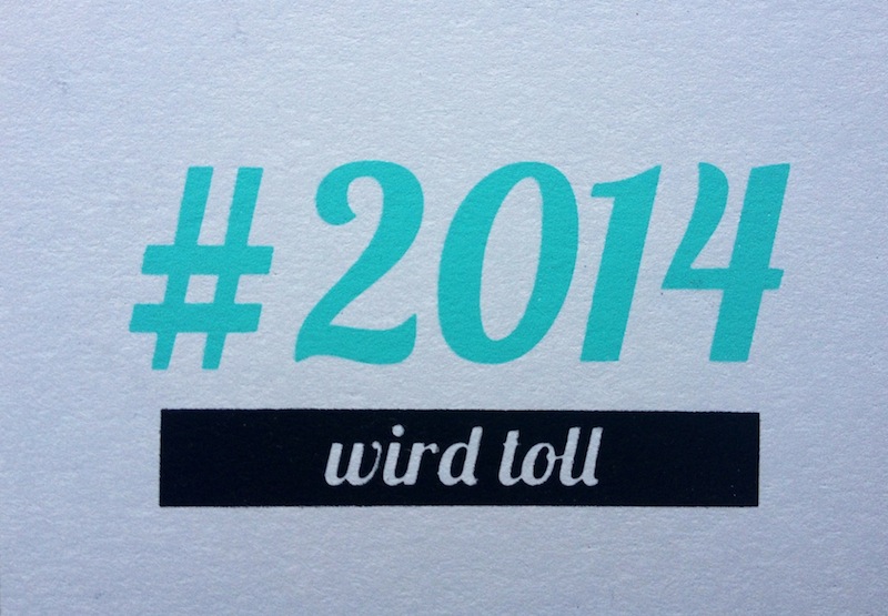 Eine echte Blogländerin erkennt man übrigens daran, dass sie an den Festtagen Optimismus verschenkt. Vorfreude aufs neue Jahr und auf das, was kommen mag. Deshalb setzt sie auch bei der Gestaltung der geschäftlichen Weihnachtspost auf die unmissverständliche Botschaft: 2014 wird toll! Und weil Selbermachen immer besonders toll ist, stellt sie sich an die Siebdruckmaschine und sorgt in Handarbeit dafür, dass dieser Satz unübersehbar seinen Weg in die Briefkästen von Partnern, Kunden und Wegbegleitern findet.