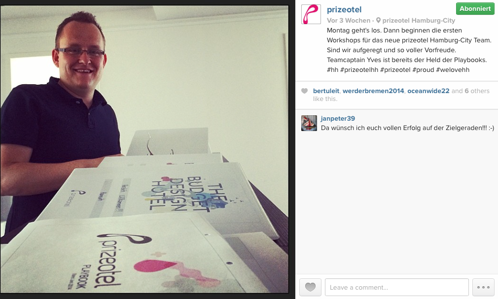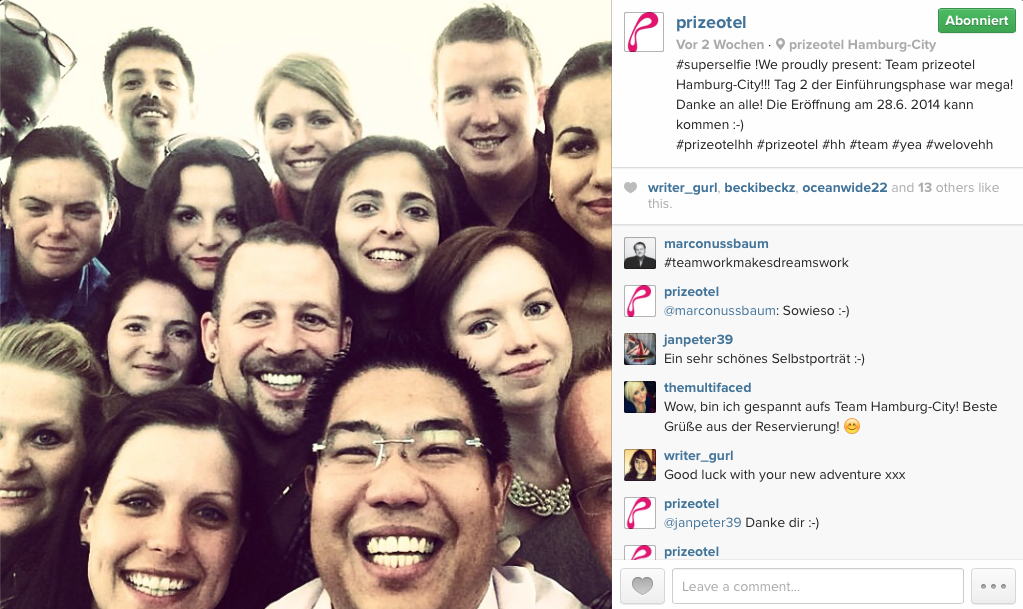 Einen anderen Ansatz verfolgt das prizeotel, das nach Bremen nun auch ein Haus in Hamburg eröffnet. Auf dem Instagram-Kanal des prizeotel bietet das Social Media-Team einen Blick hinter die Kulissen und in den Hotel-Alltag. Mitarbeiterinnen und Mitarbeiter im WM-Fieber werden ebenso gezeigt wie das neue Hamburg-Team. Und auch die Bauarbeiten werden mit Fotos festgehalten. Insgesamt führt das zu einem “Die kenne ich schon”-Gefühl, das vermutlich bei dem ein oder anderen Follower zu einer Buchung oder Hotelempfehlung an Freunde führt. Einfach weil er zu wissen glaubt, was ihn vor Ort erwartet. Auf professionelle Fotos wird dabei nicht gesetzt, sondern auf Schnappschüsse. Etwas, das bei Instagram durchaus sein darf - gerade wenn man aus dem Alltag berichtet.